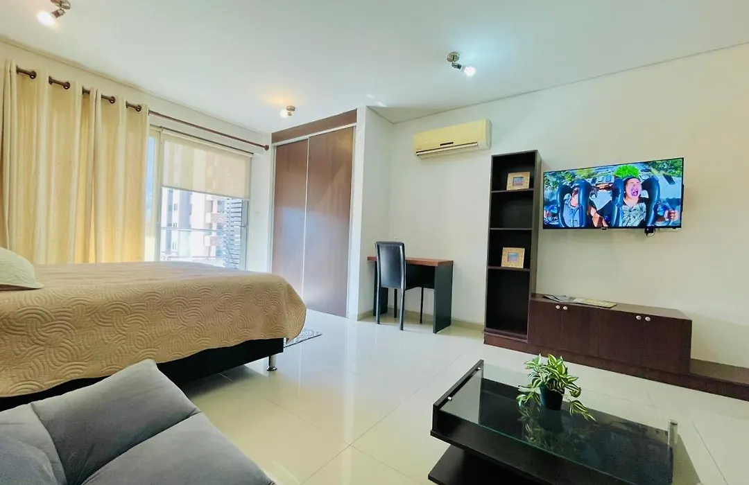 The 1-room Monoambiente Amplio Y Comodo Oasis Santa Cruz de La Sierra is nearly a 5-minute ride from Flamingo and includes a fitness centre. Set just a short stroll from Barrio Equipetrol, this family-friendly apartment with a patio overlooks the garden.